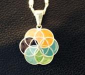 Sterling Silver pendant with rainbow colors, chakra colors on back, and energy stamp: 71042 for Success. Includes 18" silver-plated chain in velvet gift pouch.